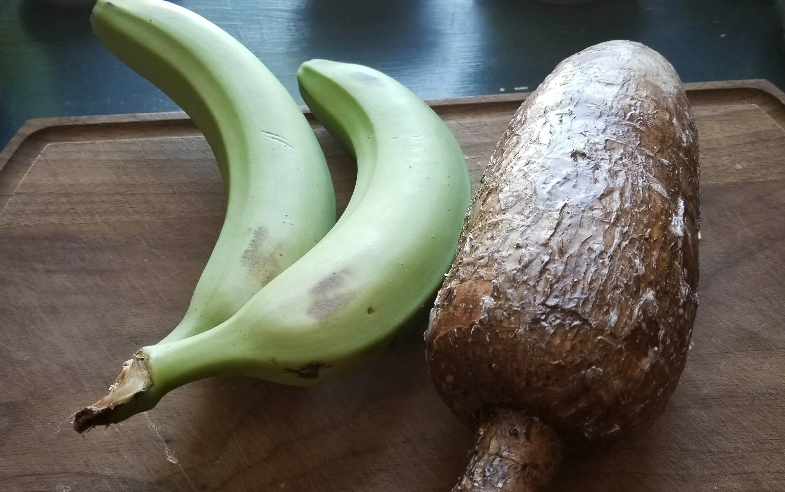 Use equal parts cassava and plantain for balanced texture. Fresh is best. Powdered versions exist, but nothing matches the real pounded one.