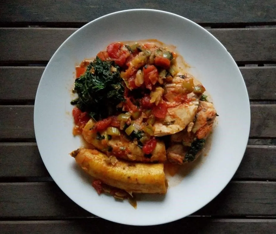 Green bananas soften into a creamy, savory base that thickens the stew. They don’t taste like fruit, they taste like home.