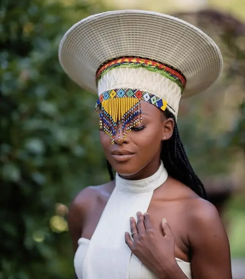 The isicholo is a wide grass hat worn only by married Zulu women. It shows marital status and earns respect in the community.